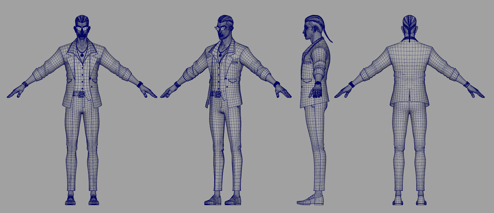 I used UDIMs to separate the UVs, allowing me to manage textures and distinguish between the body, clothing, and props."